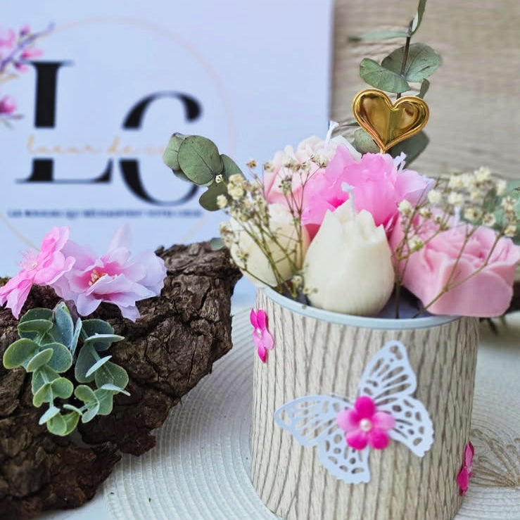 Garnit de fondants et bougies, ce bouquet diffuse une senteur florale subtile qui apporte une ambiance apaisante à votre intérieur.