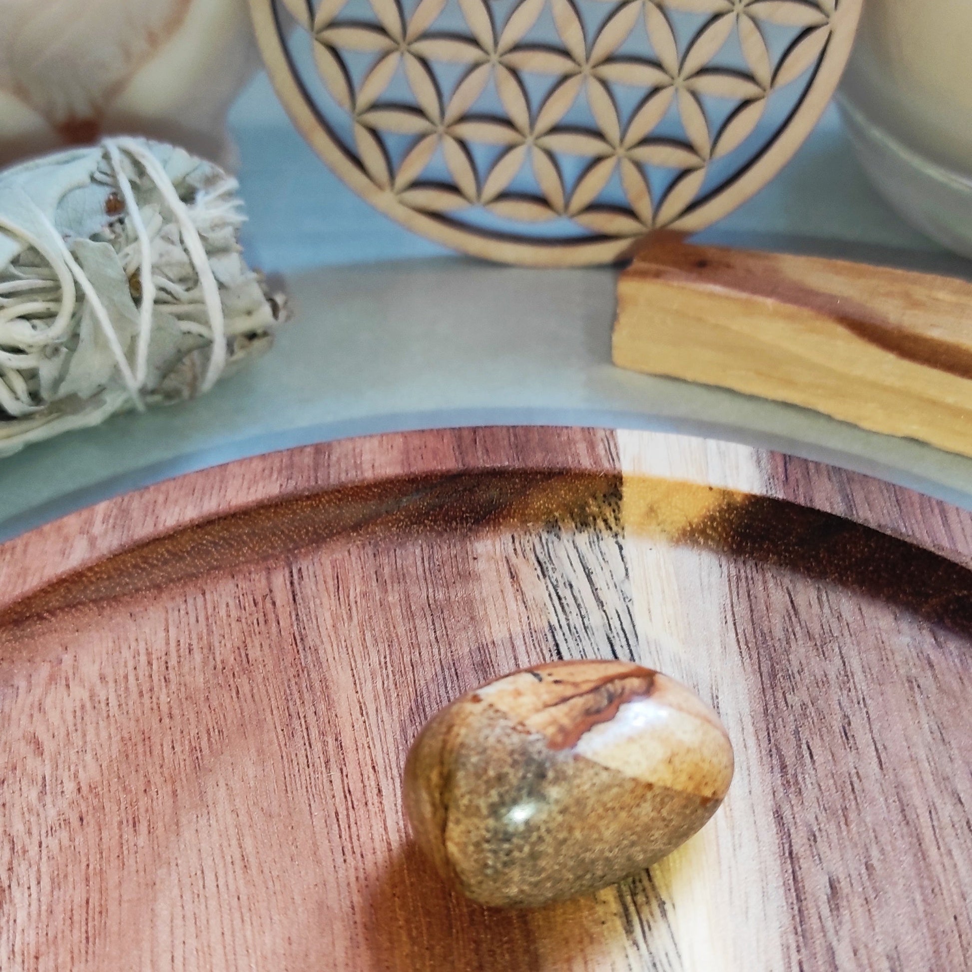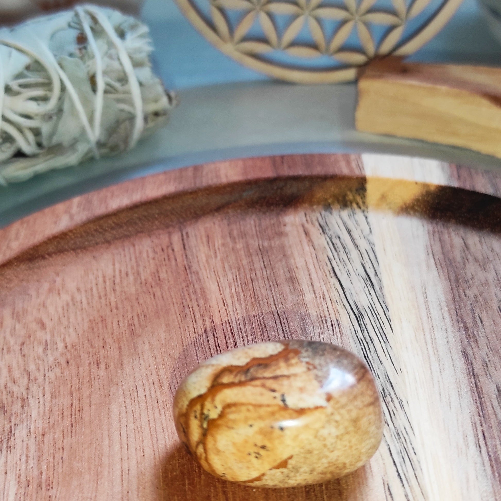 Pratique et facile à emporter, la pierre roulée en Jaspe Paysage est idéale pour rester ancré, confiant et inspiré au quotidien.